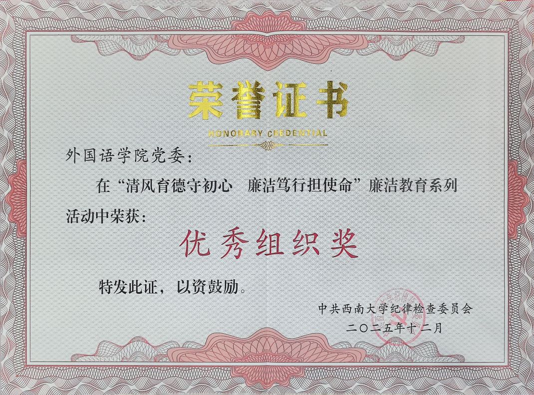 近日,中共西南大学纪律检查委员会组织的“清风育德守初心 廉洁笃行担使命”廉洁教育系列活动圆满收官。我院以高度的责任感统...