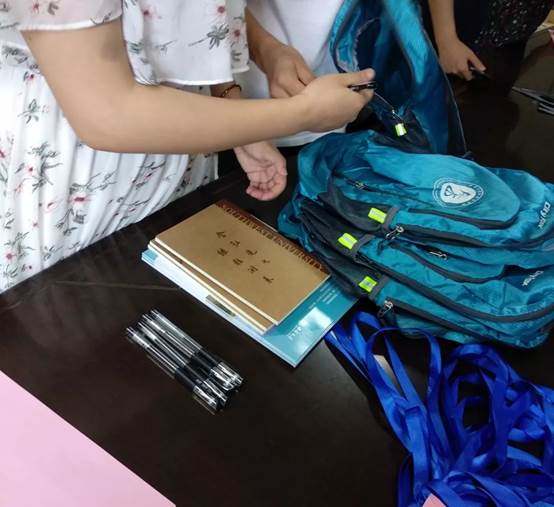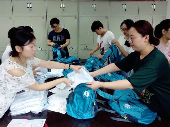 衣服已经为大家装进书包了,再次仔细核对每个包的东西是否都齐全呢。