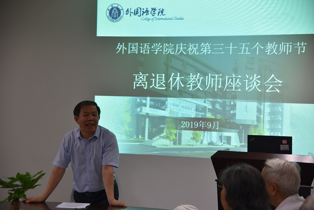 此次座谈会由陈渝副书记主持。会议开场由学生代表周玥辰宣读教师节慰问信,向学院全体离退休教职工致以节日的问候与祝福。宣读过慰问信后,新进教师李恒、晏清皓、向源做了自我介绍,并向在场的每一位离退休老师献上鲜花,感谢他们为教育事业的无私奉献。