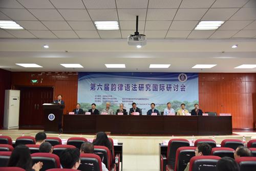 10月12日上午,由北京语言大学主办,西南大学best365英国在线体育官网、重庆市“外国语言学与外语教育研究中心”承办,外语教学与研究出版社、重庆市外文学会、Cognitive Linguistic Studies、Asian-Pacific Journal of Second and Foreign Language Education 协办的第六届韵律语法研究国际研讨会(ICPG6)在best365英国在线体育官网903学术报告厅隆重拉开帷幕。出席本次大会的校领导和专家分别有:西南大学副校长陈时见教授、国际中国语言学会常务理事北京语言大学冯胜利教授、台湾清华大学语言学研究所及中文系蔡维天教授、密歇根大学语言学系端木三教授、南开大学汉语言文化学院施向东教授、复旦大学外文学院马秋武教授、台湾清华大学语言研究所谢丰帆教授、中国认知语言学研究会副会长西南大学best365英国在线体育官网文旭教授及芝加哥大学数字人文与计算机研究领域专家康森杰教授等。会议由西南大学best365英国在线体育官网院长刘承宇主持,共有80多名专家和代表出席了本次研讨会。