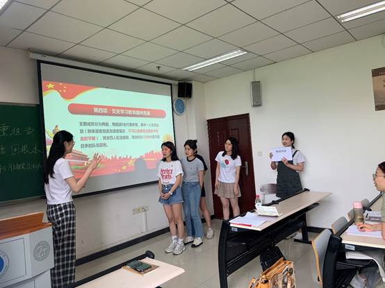 本次主题党日活动共有六项议程。会议第一项,首先由支部书记岳莉介绍了该支部的具体情况,本科生第三党支部是一个以本科英语公费师范专业毕业生为主的支部,现有教师党员1名和学生党员27名,支部成员现已签约到重庆八中、成都七中万达学校等各个中小学,就业情况总体良好。