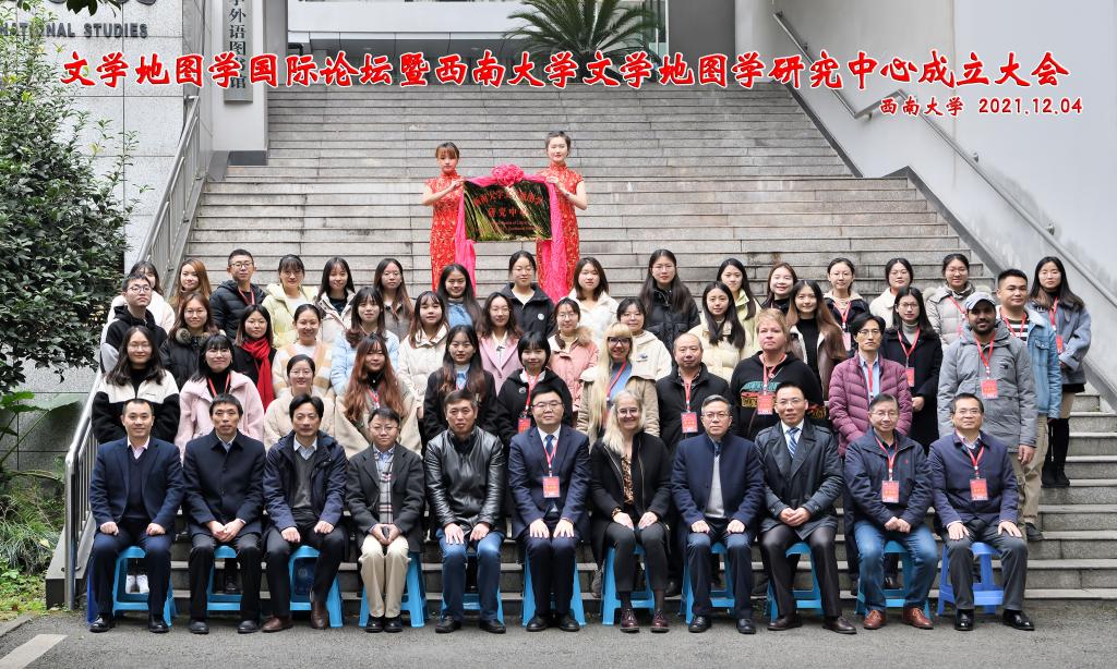 12月4日,文学地图学国际论坛暨西南大学文学地图学中心成立大会于best365英国在线体育官网成功举办。本次大会由西南大学best365英国在线体育官网主办,郭方云教授领衔的西南大学文学地图学研究中心承办,商务印书馆、《探索与争鸣》和《广东外语外贸大学学报》协办。大会邀请到罗伯特·塔利(Robert T. Tally, Jr.)教授、梅新林教授、陆扬教授等9位国内外文学空间研究界名家做主旨发言,四川外国语大学校长董洪川教授等9位学界名家主持,浙江大学郝田虎教授等9位著名学者进行精彩点评;本次大会影响广泛,国内外70所大学(单位)、201名学者参会。