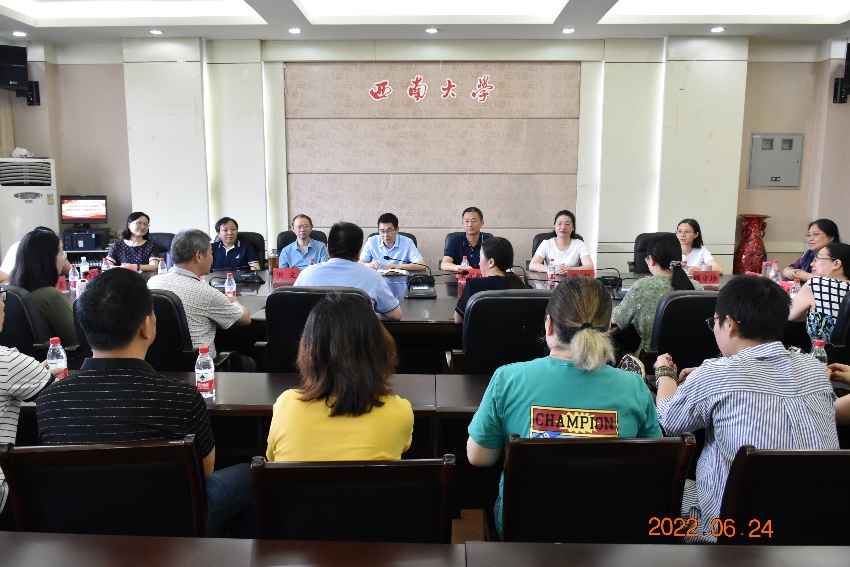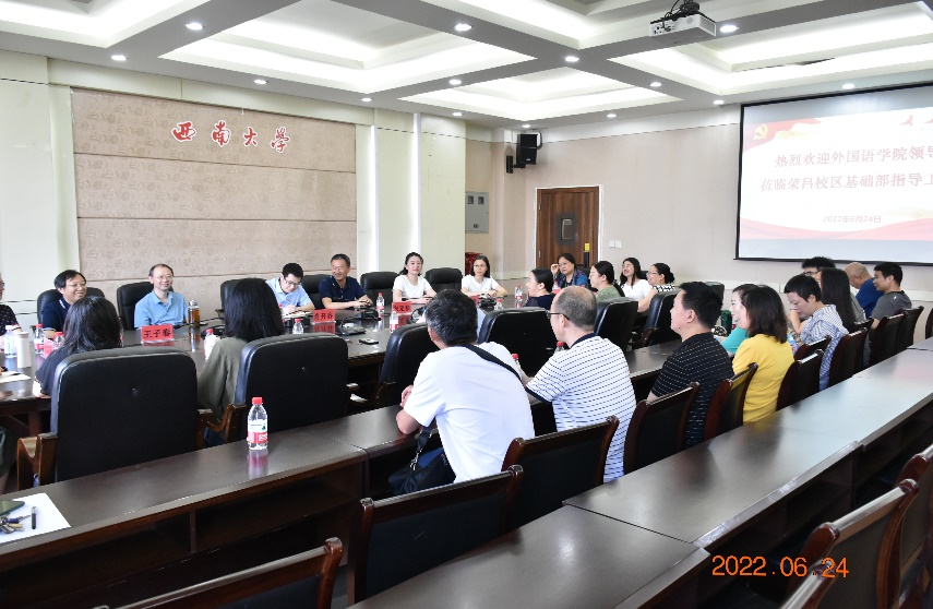 为贯彻落实西南大学关于加强荣昌校区教学一体化的相关要求,2022年6月24日,由best365英国在线体育官网肖开容副院长带队前往荣昌校区同基础部大学外语教研室进行交流。交流的主题涉及大学外语选修课程设置、教学模式、成绩测评和管理模式等。