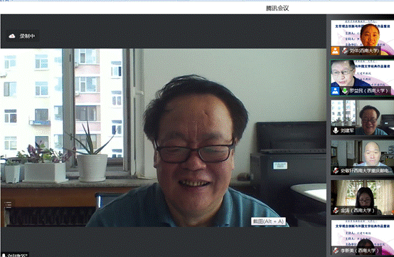 讲座最后,刘教授现场回答了听众们的踊跃提问。河南信阳师范学院柳士军老师向刘教授请教如何定义及阐释文学的现代性叙事。刘教授认为,现代性涉及文学作品的历史语境。文学是一种思维模式,文学的现代性就是一种思维模式的现代性。现代性表现了不同历史时期不同语境的读者对文本的不同阐释,因此,文学的现代性是一个动态的发展过程。类似“现代化”,刘教授更愿意把现代性看成一个“名词+动词”结构,表现发展变化的动态过程。现代性具备不同学科和不同个体的特征,理解的时候应做个别的处理,得出不同的结论,虽然它们有共同之处,却各有不同。西南大学博士生、重庆邮电大学教授史敬轩问及当今历史语境下文学研究的难点。刘教授列举了六点突出问题并做了详尽的阐述,包括人文理性与技术理性的冲突、个人价值与集体价值的冲突、个人身份定位、新自由主义、反智主义及批评方法的合理应用。西南大学博士生金涛请教文学研究中城市的多重属性。刘教授认为,城市首先应该满足人类的物质生活,其次帮助人们实现精神愉悦,二者缺一不可。此外,刘教授建议青年学者批判地理解和吸收国外理论家的观点,仅用他人观点来为自己所用。对于在线听众提出的其他问题,刘教授都做了鞭辟入里、画龙点睛且富有启发的解答。本次讲座在愉快的气氛中圆满结束,听众互动积极,反响热烈。