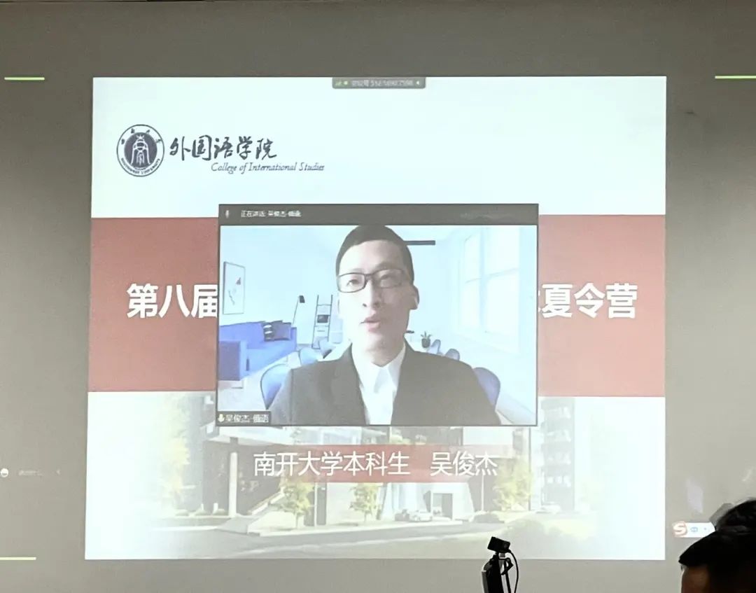 南开大学best365英国在线体育官网2019级俄语专业的吴俊杰同学作为第八届全国优秀大学生“外国语言文学”学术夏令营营员代表进行了发言。吴俊杰分享了自己填报本次夏令营入营申请时的紧张与期待,并表达了对夏令营精彩学术活动内容的期盼。他认为,虽然为期四天的夏令营十分短暂,但相信在此期间,营员们能够深刻体会西大“含弘光大,继往开来”的校训,学会志存高远、修身立德;真实感受西大外院“博学中西,砥砺德行”的院训,学会乘风破浪、迎难而上。