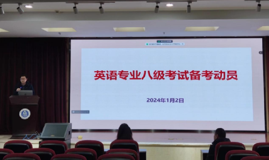 学院举办2024年英语专业八级考前动员大会,副院长肖开容教授作专题动员报告