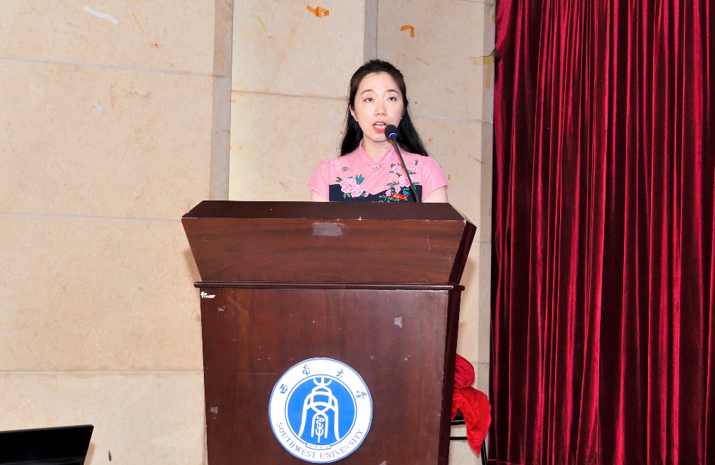 会后,学院还进行了师范生宣誓仪式。西南大学优秀毕业生周思妍同学领誓,全体师范生郑重宣誓:“热爱祖国、忠于人民!博雅仁爱,铸就师魂!早日成长为优秀的人民教师,立志成为献身教育,服务社会的人民教育家。”