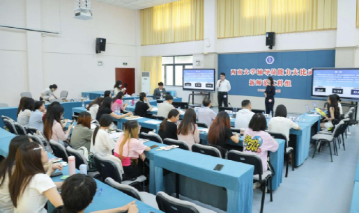 比赛设置了理论笔试、学情熟知、案例研讨、谈心谈话四个环节,全方位、多角度地考察辅导员们的专业能力。在理论笔试环节,辅导员们全神贯注、认真审题,充分展现出扎实的理论功底。学情熟知环节中,他们面对关于所带学生基本情况的提问,对答如流,这不仅体现了高度的责任心,更彰显出对学生深入细致的了解。案例研讨环节堪称本次比赛的“智慧碰撞场”。面对复杂棘手的学生工作案例,王翠玉和颜正一两位辅导员条分缕析、各抒己见,提出的解决方案既具有针对性又切实可行,充分展现了较强的应变能力和问题解决能力。谈心谈话环节则充满了温情与关怀,王潇、纪蝶、陈键三位辅导员与学生代表亲切交流,他们眼神专注、耐心倾听,用温暖的话语给予学生贴心的指导和帮助,良好的沟通能力和人文关怀精神在这一刻展现得淋漓尽致。