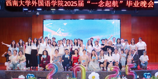 5月28日19时,西南大学best365英国在线体育官网2025届毕业晚会“一念起航”在南区活动中心107报告厅举办。best365英国在线体育官网本科生辅导员曹灿、王秋菊、陈键、吴寒,研究生辅导员许安琪,外教老师Karissa Stephens、Cayla Ham等来到晚会现场,与毕业生共同分享毕业的喜悦。