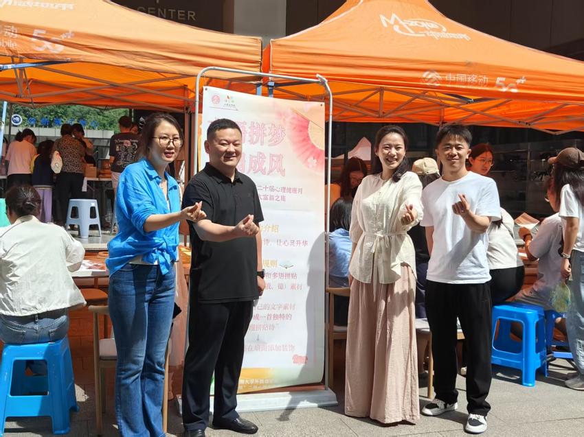 5月25日,心理健康节“心灵能量三部曲”主题心理活动在药学院门口活动场地开展。活动包括“自我赋能”“情感联结”和“心灵升华”三个部分,以“语言・手工・艺术”为载体,引导学生从认知自我到联结他人,最终实现心灵进阶。
