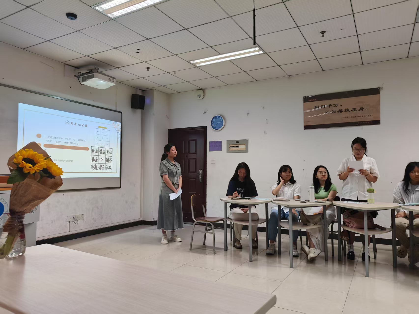 5月9日晚,“信语秘境,爱启心程”自我告白情书活动在5教412教室举行。活动旨在引导学生通过书信与自我深度对话,表达自我认同,增强内在力量。活动分为开场致辞、情书朗读分享和总结呼吁三个环节。参与者积极上台朗读情书,分享在书写过程中的感悟与收获,现场气氛温暖而热烈。活动最后,参与者将书信封入信封或拍照留存,并合影留念,记录下这一自我对话的珍贵时刻。
