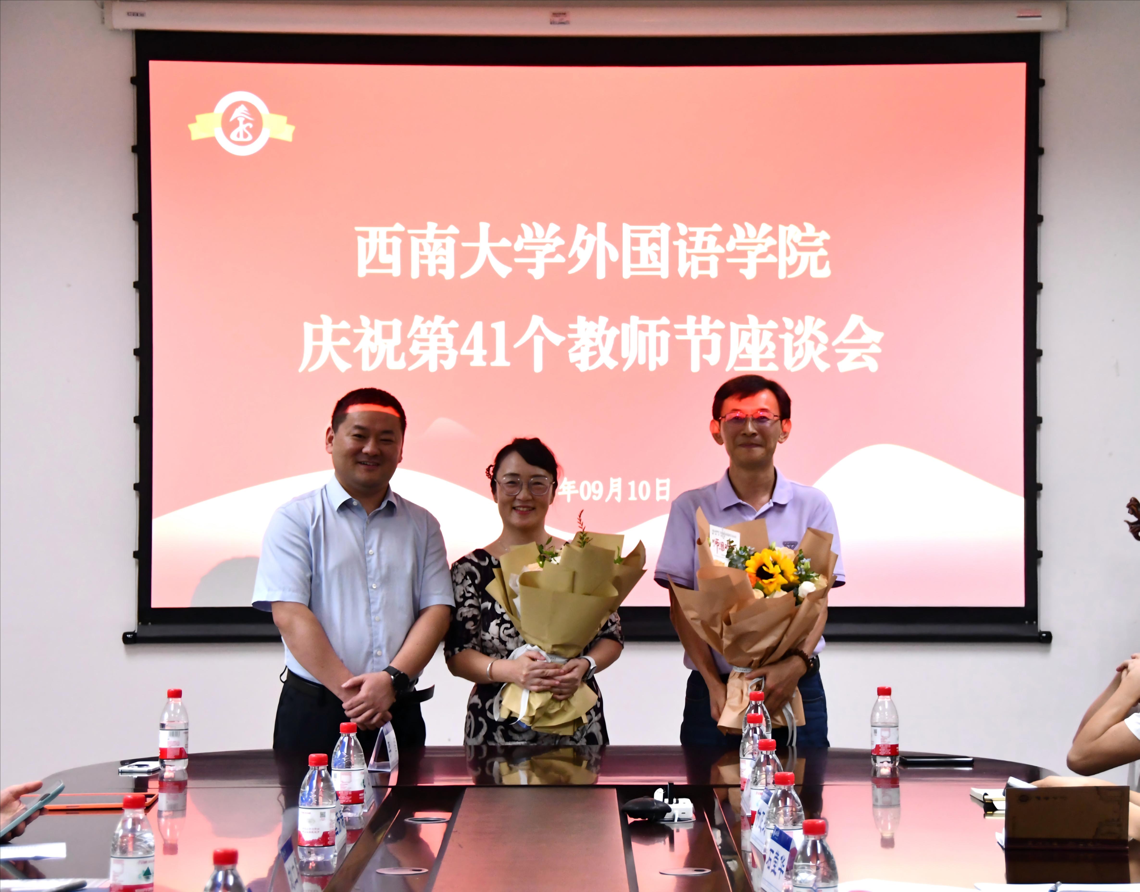 2025年9月10日下午,西南大学best365英国在线体育官网在313会议室隆重举行第41个教师节庆祝座谈会。学院党政领导班子成员、教授代表、从教满三十年教师代表、新进教师及新晋职称教师等20余人齐聚一堂,共庆节日、共话发展。会议由学院副处级专职组织员石莹华主持。