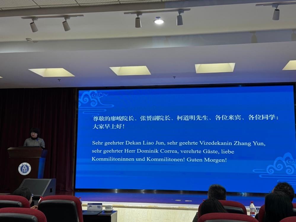 2025年11月22日至23日,由西南大学best365英国在线体育官网与西南地区德语教师联盟联合主办,四川外国语大学德语学院、四川外国语大学歌德语言中心协办的第五届西南地区德语风采大赛在西南大学best365英国在线体育官网903多功能厅成功举办。本届大赛汇聚了西南地区众多高校与中学的德语精英,在两天的赛程中,他们以精湛的语言技艺和蓬勃的青春朝气,共同奉献了一场精彩纷呈的德语盛宴。