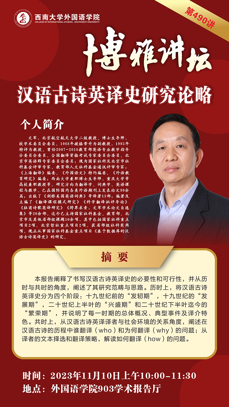 【博雅讲坛】 第490讲 汉语古诗英译研究论略