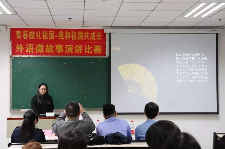 选手们毫不怯场,在ppt的辅助下用日语自信大方地进行了流利精彩的演讲。紧扣“青春献礼祖国--我与祖国共成长”的主题,用自己的方式分享了他们与祖国的微故事。