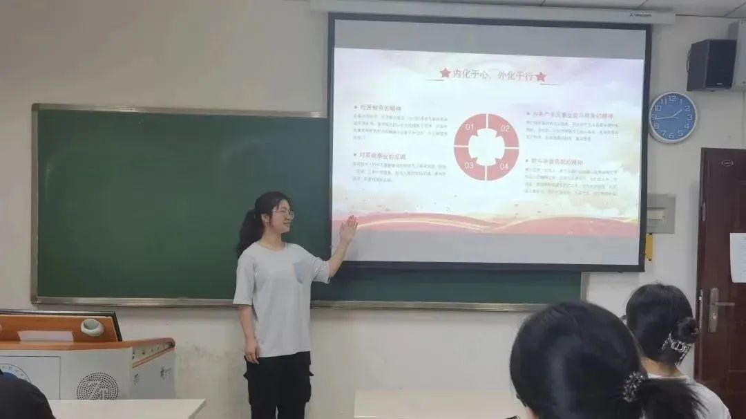 在“讲一个故事”党史故事环节,入党积极分子分享了战斗英雄杨根思的故事,杨根思同志在抗美援朝中留下的铮铮誓言激励着一代又一代的共和国军人,也深深地感染了现场聆听的同学们。