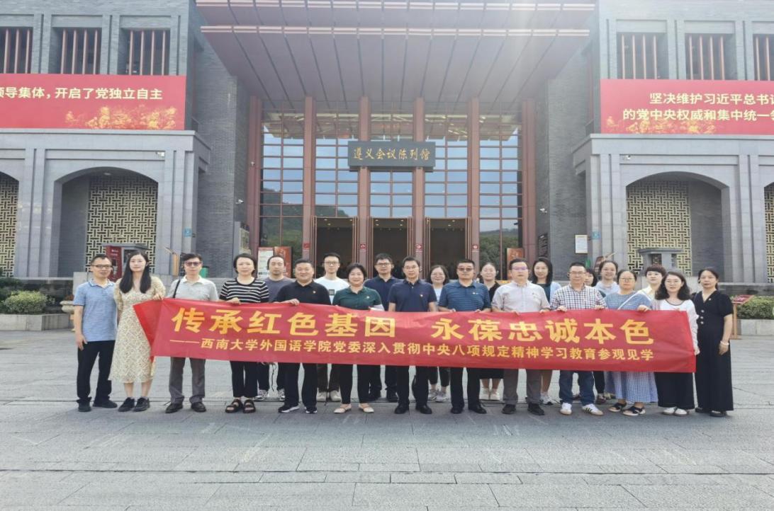 为扎实推进深入贯彻中央八项规定精神学习教育,进一步强化党员干部作风建设,将作风提升与党性锤炼紧密结合,西南大学best365英国在线体育官网党委于7月5日至6日精心策划并组织学院两委委员、党支部书记、支委及系部主任,奔赴贵州省遵义市开展“传承红色基因 永葆忠诚本色”参观见学活动。